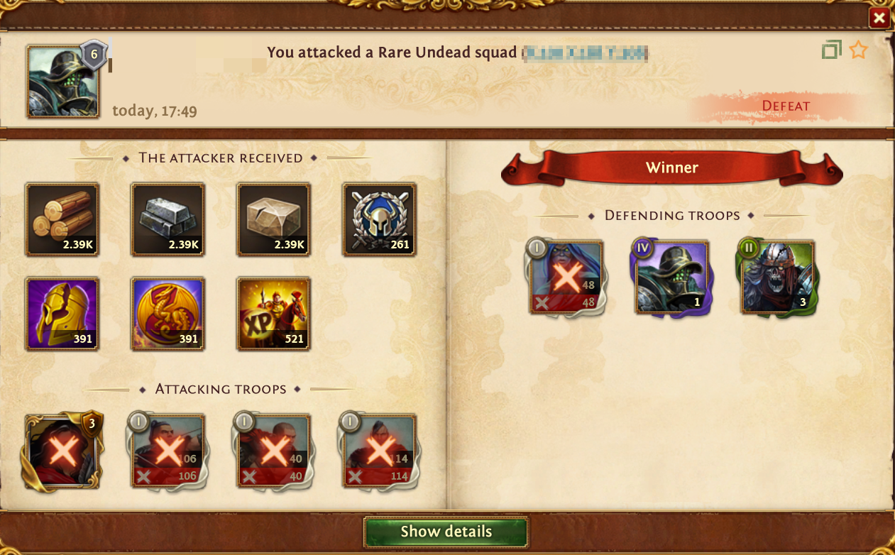It's important to understand that you only get rewards for fighting monsters when your troops defeat at least one enemy unit.