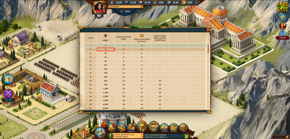 - Au niveau 2, le Capitole vous octroie 4 points de Puissance.