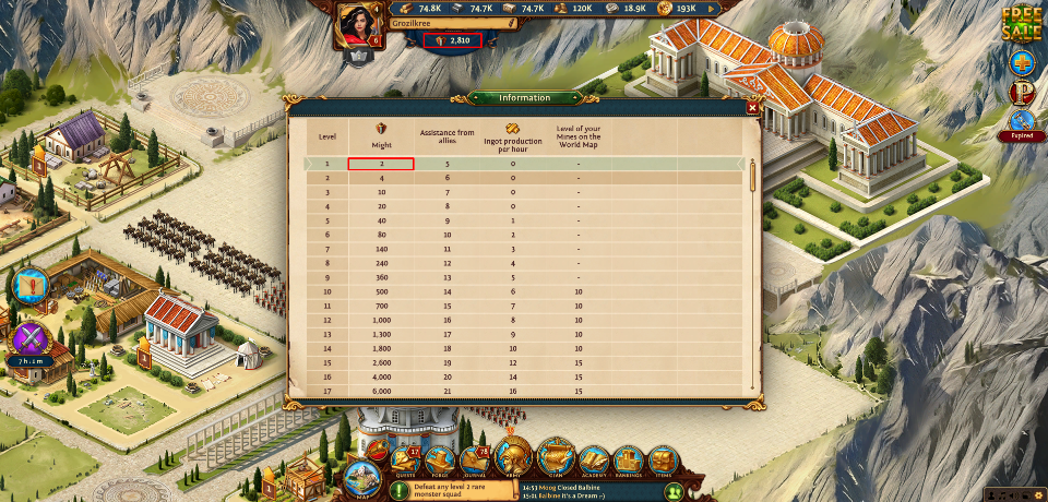 - Une fois que vous avez amélioré le bâtiment, vous pourrez voir que votre Puissance n'a augmenté que de la différence de points de Puissance acquis aux niveaux 1 et 2, soit 2 points et non 4. La même logique s'applique pour les technologies.