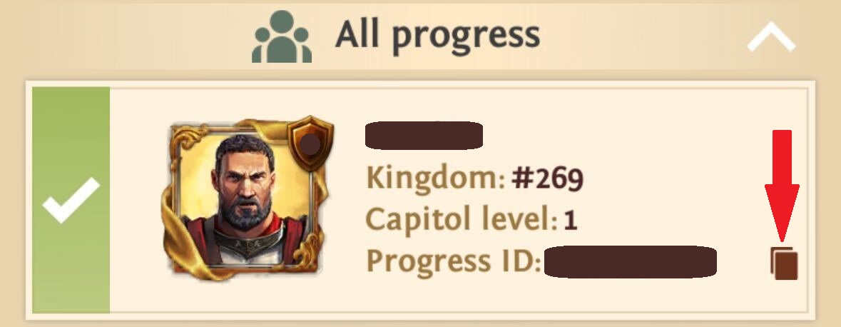 Identyfikator postępu będzie widoczny pod poziomem kapitolu. Kliknij dwa kwadraty obok niego, aby skopiować identyfikator.